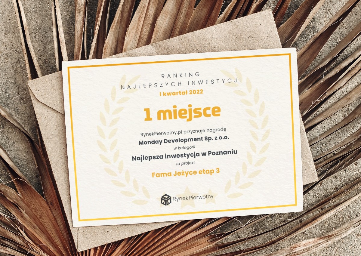 3. etap inwestycji Fama Jeżyce znalazł się na szczycie rankingu najlepszych inwestycji w Poznaniu według portalu Rynek Pierwotny.